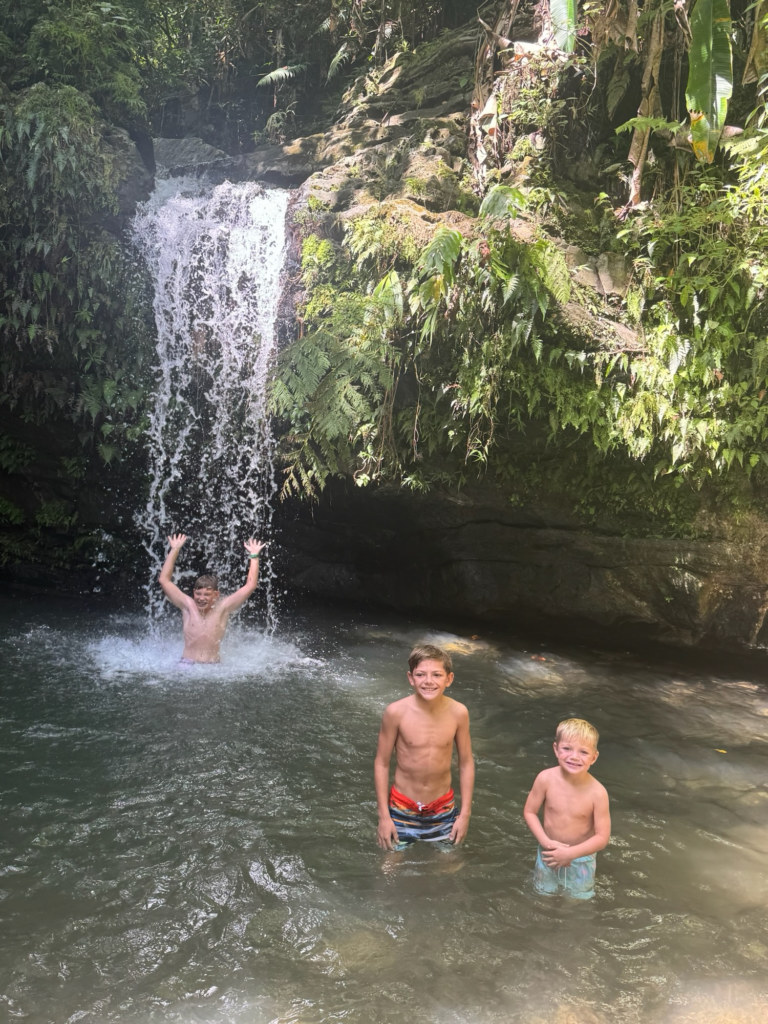 Afterwards, we cooled off at Las Paylas natural water slides, which quickly became a favorite with the kids. This family-run attraction is $10 to park plus $1 per person to enter. When we visited, it wasn’t crowded, but it can get busy, so be prepared for tight parking and a potential line for the slides. Las Paylas is one of the best kid-friendly activities near El Yunque and a must-visit on a Puerto Rico family vacation.